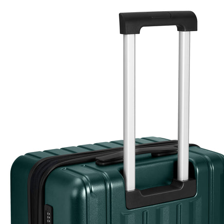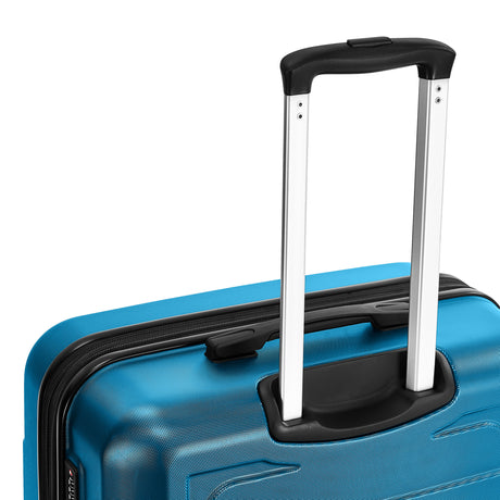 Double Spinner Wheels: Features an adjustable, sturdy 3-step telescopic aluminum handle suitable for different heights, and 360° double spinner wheels for quiet, smooth movement.